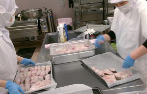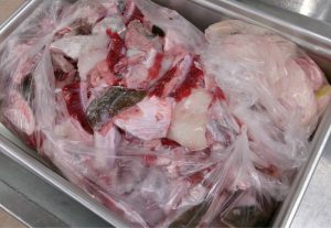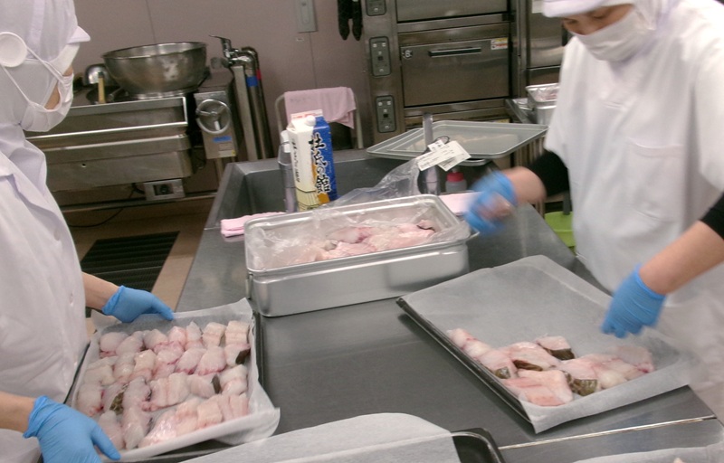 鮮度抜群の鱈の身とアラ(どんがら)は、到着後すぐに下ごしらえに取り掛かりました。
