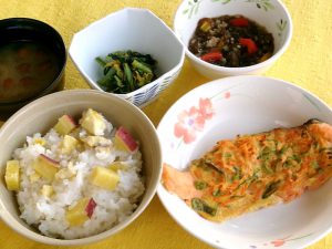 大きな栗とさつま芋を食べやすくカットし、「芋栗ごはん」や「芋栗がゆ」にして、秋の味覚を楽しんでいただきました。