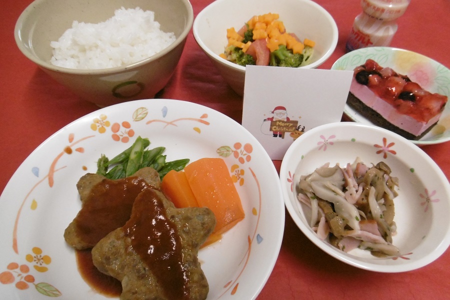 ◇メニュー◇ ごはん クリスマスハンバーグ ツリーサラダ キノコのアヒージョ クリスマスデザート ヤクルト クリスマスハンバーグには、赤ワインを加えた風味豊かな特製ソースをかけました。付け合わせの甘い人参グラッセとともに […]